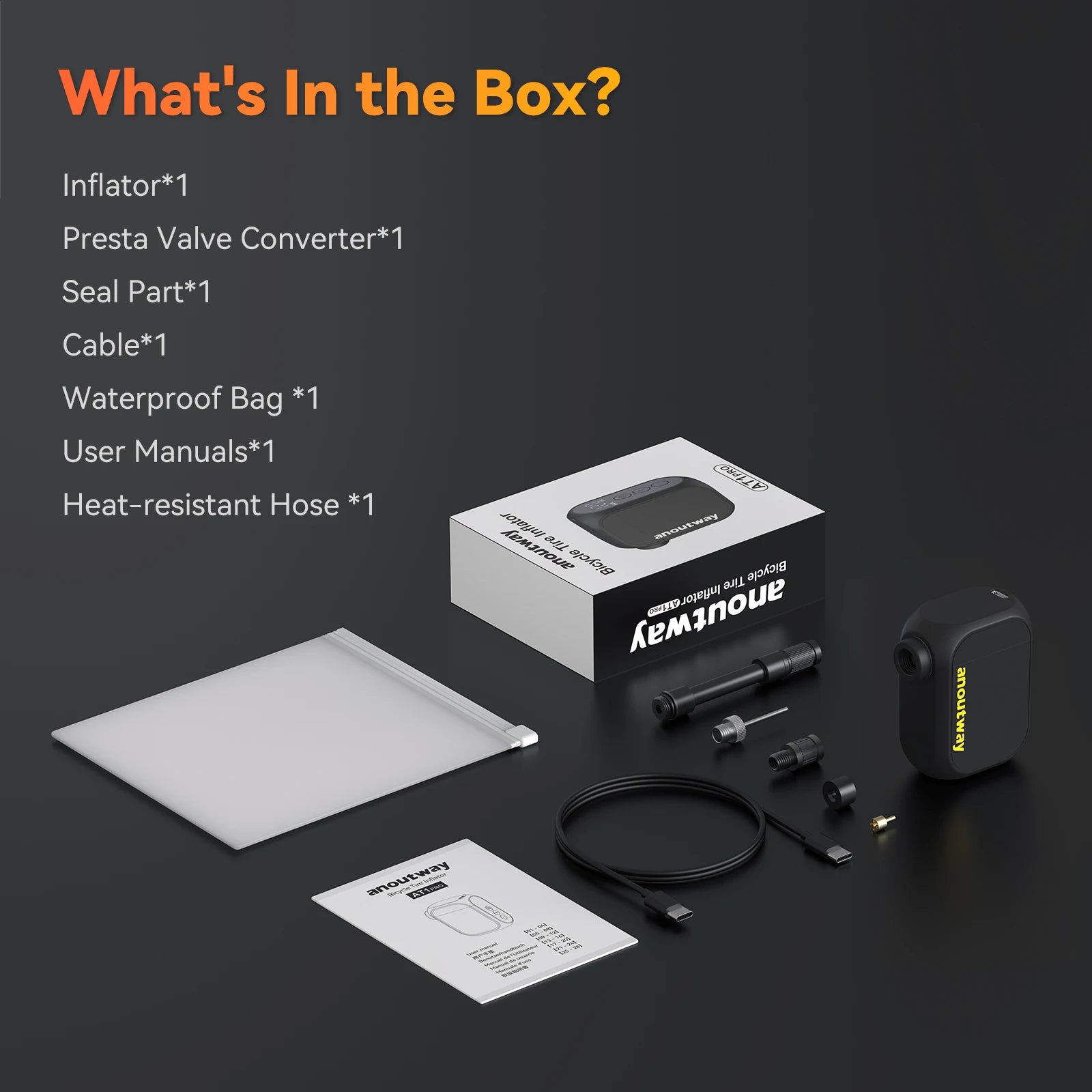 Bombe électrique Anoutway AT1 Pro Mini pour vélo, gonfleur de pneus sans fio avec tela, chargement rapide de 25 minutes, batterie maximale de 120 PSI et 450 mAh